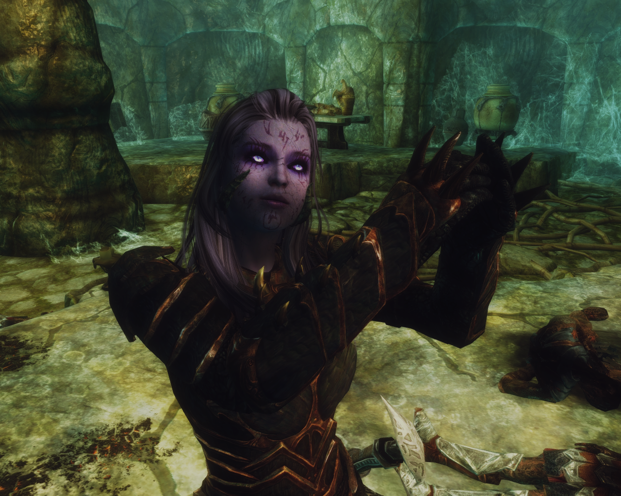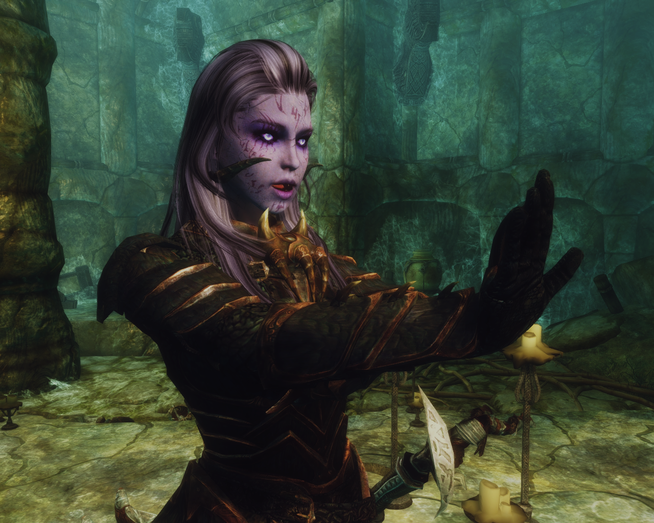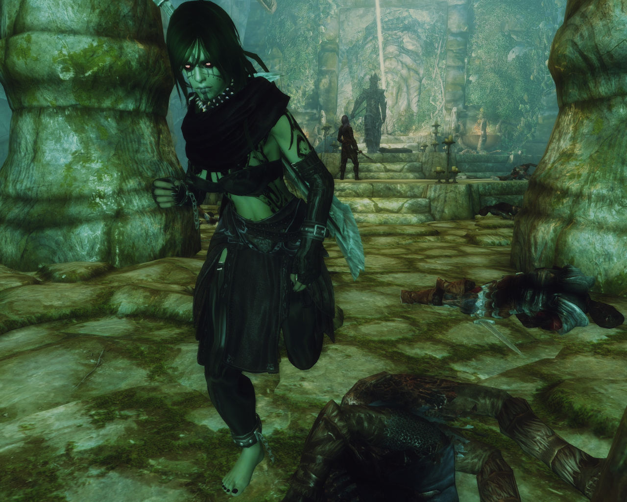 "So what's next? A chastity belt?" The unknown entity completely ignored Skanas snide remark and continued to speak."Your bindings were lacking, i corrected that. More important, i have a task for you, you are to destroy that miserable failure of a servant named Malkoran. He denies me his sworn service and pursues his own ambitions. One of my personal servants will accompany you and you will obey her every word as you obey mine." Skana turned around to leave the tavern and thought about how she isn't exactly keen on having a female dusty old draugr accompanying her.