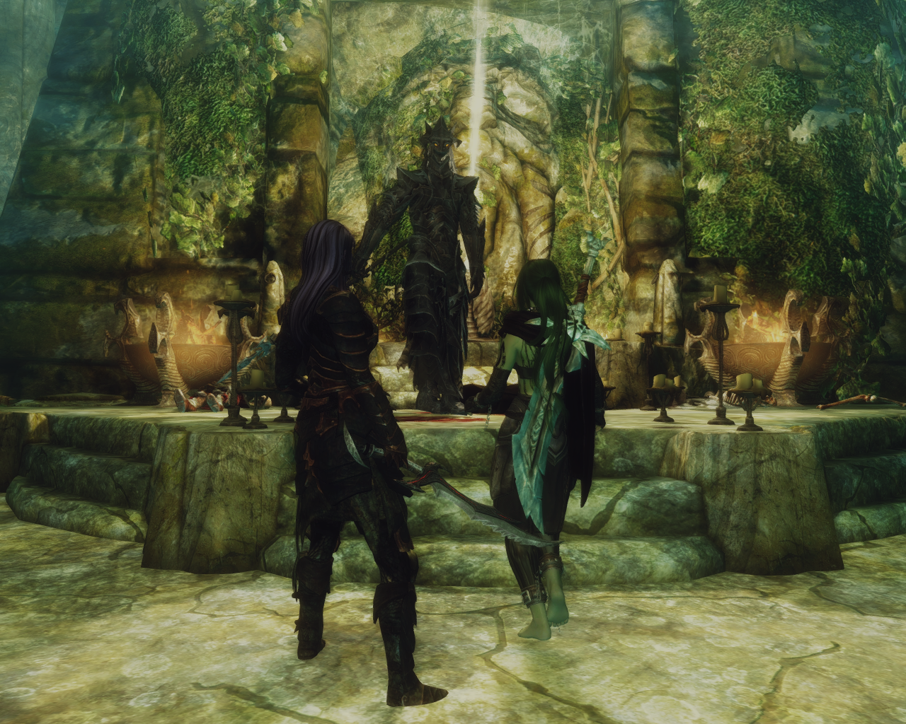 Skana was alerted, this wasn't right. "Strange, I swear i noticed a golden sword stuck in that altar when i fought with Malkoran, but now it's gone."