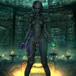 Retexture of Aradia's Living Armor with working weight slider. Hermaeus Mora themed.
