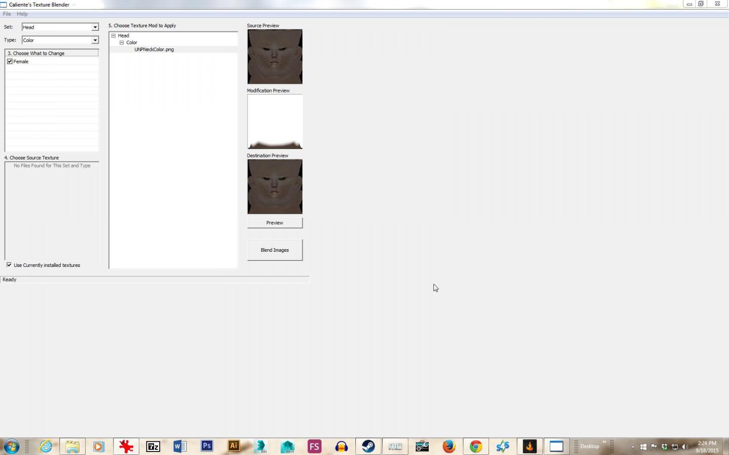 Does your preview look black in TexBlend? you may need to edit the config.xml. Mine's installed manually in Data, but MO's running it. My files don't go to overwrite though.Important:Texture Blender only works if you have a complete Face/Body Mod installed. If you're missing one of the folders below and Blend the Faces, you will end up with a Black Face for that specific Race.