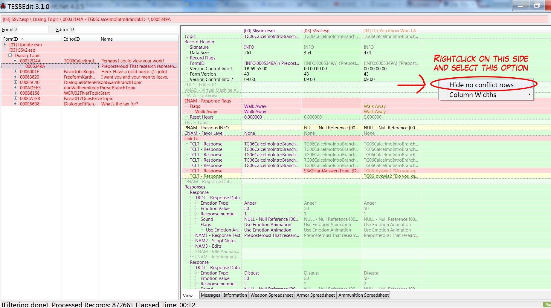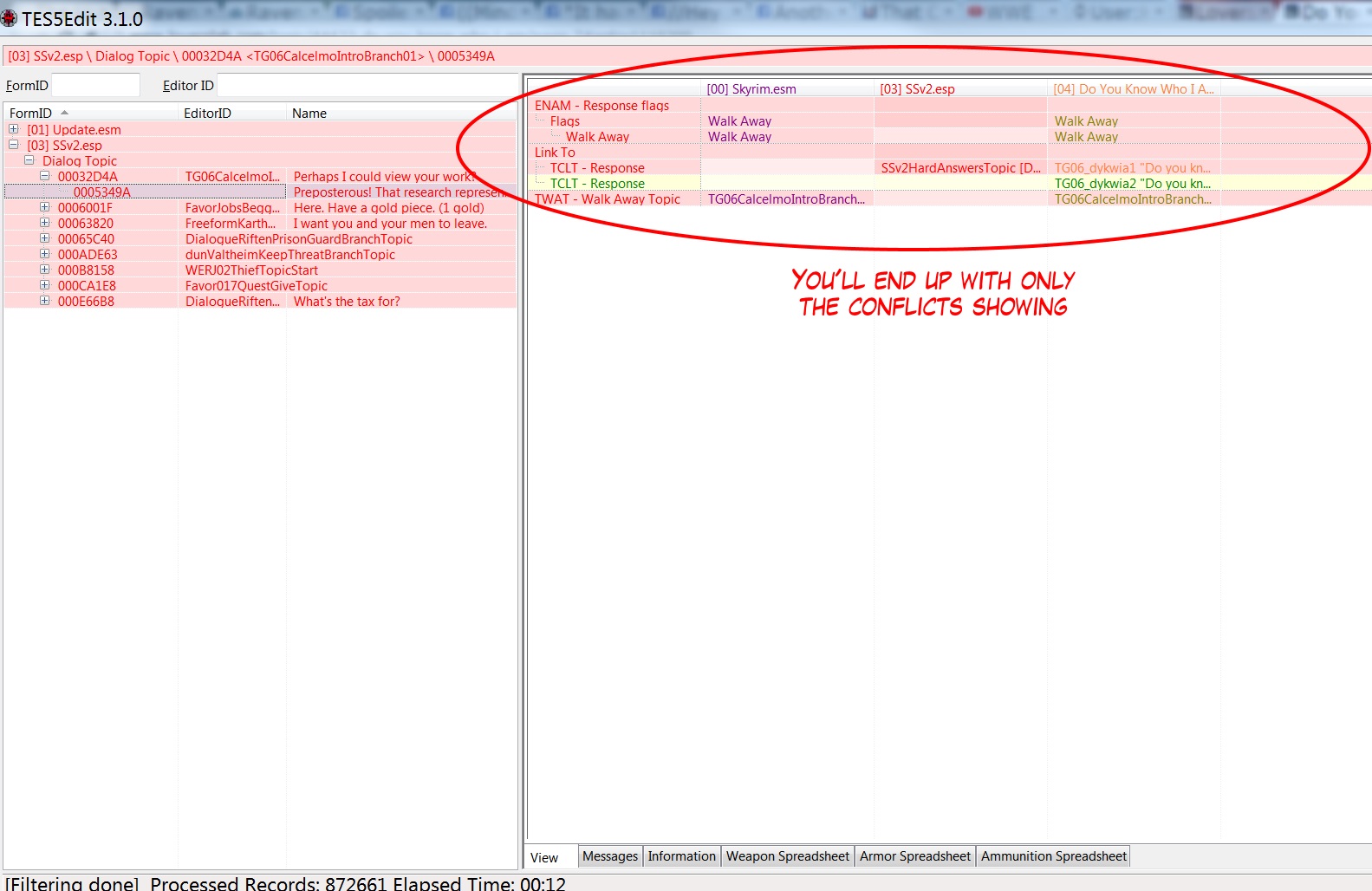 I should mention the patches WILL work on future versions just fine since it's just preserving both additions to the dialogue trees. It just wouldn't include any future conflicts. The latest version of TES5edit has a "Apply Filter to Show Conflict Losers" filter selectable from the main rightclick menu now so the conflicts would be easy to find. It's doing up all the different versions of the patches that takes the most time... haha. So maybe I'll check on it every few versions of either... but I'm making no promises.
