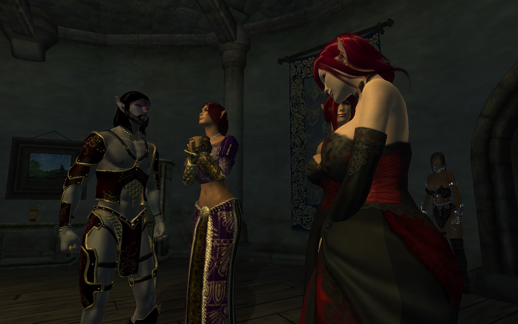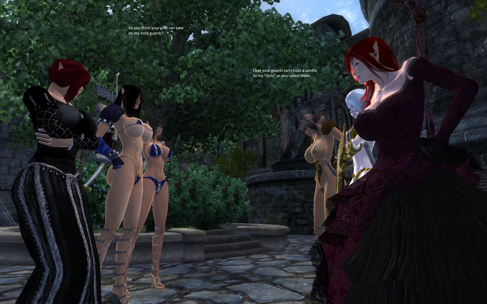Just Cris, Shadow and Breeze in the harem outfits added by the goddess store in the Ardah palace. And who wouldn't want these 3 in a harem?