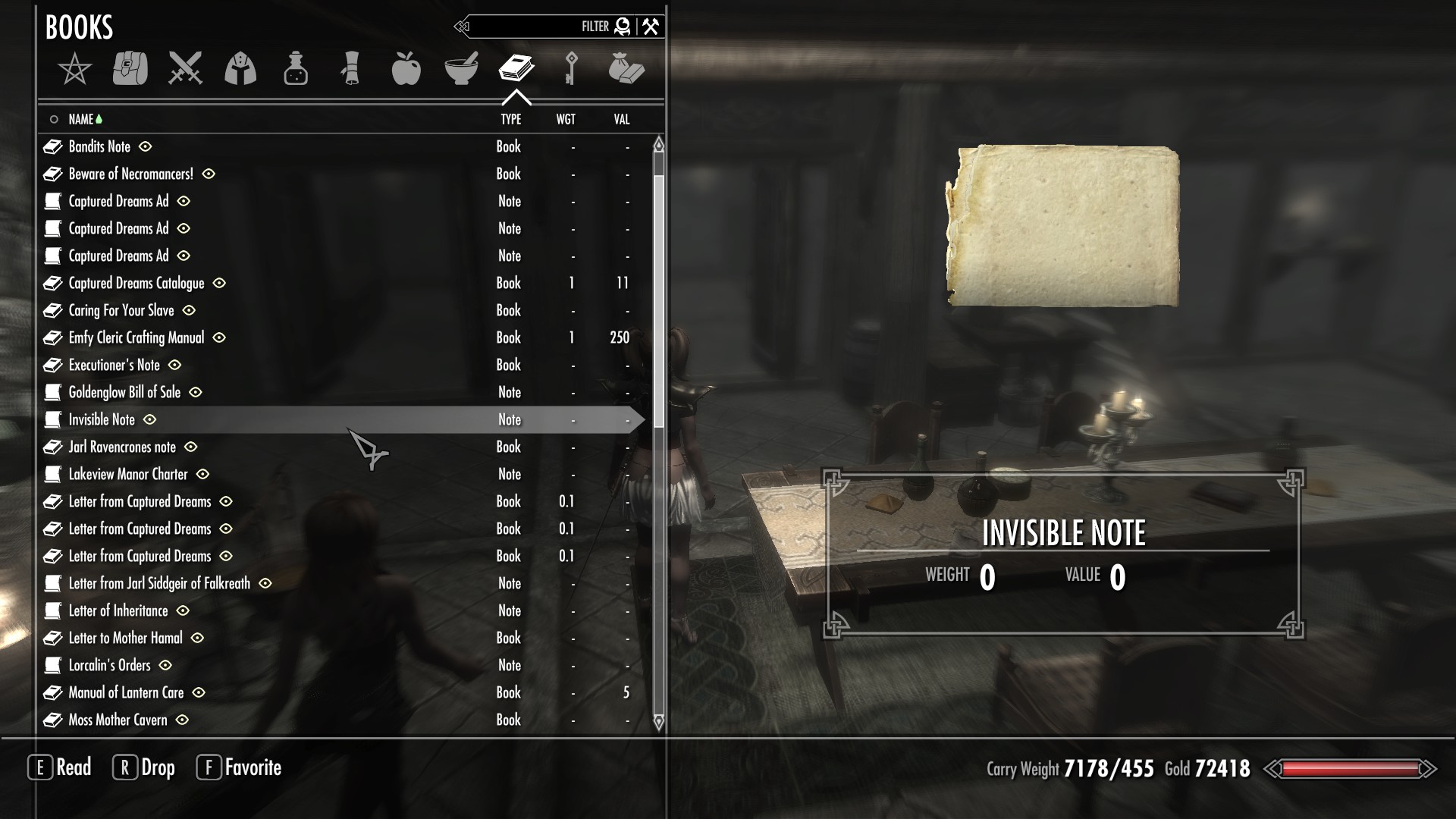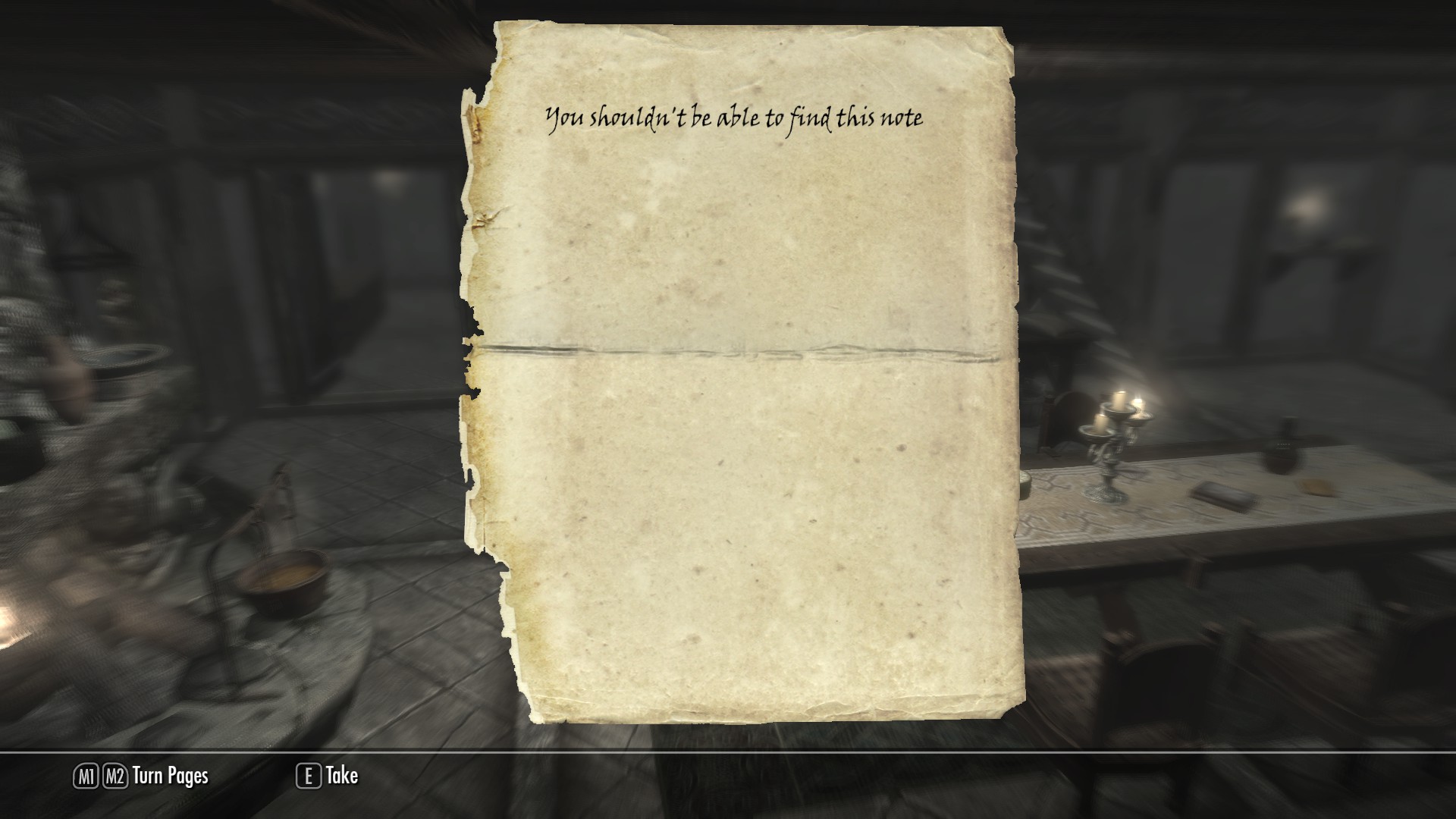 I came back upstairs from the underground bath under the Temple where i ccidently found a not, note was called "Invisible Note" and all the note said was....You shouldn't be able to find this note.