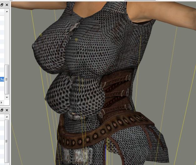 PPS @ deadSomething : i posted a screenshot of what i was talking about the texture ... here it's not yet a converted model , this is just the Colourwheel Chaimail ( not quiet sure ,but the texture links to the Colourwheel's folder ) without any Bouncing system where i add two artificial ( = cutted boobs ) pairs of breasts ... the Mithril texture in this case will not looks very well in the same conditions ( that's just an exemple ) .