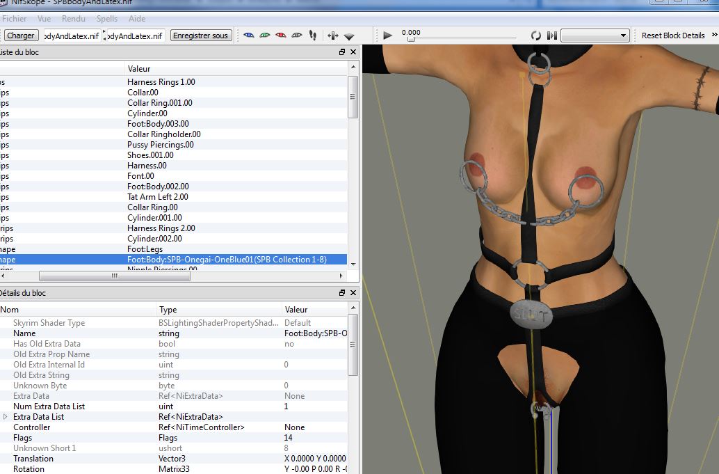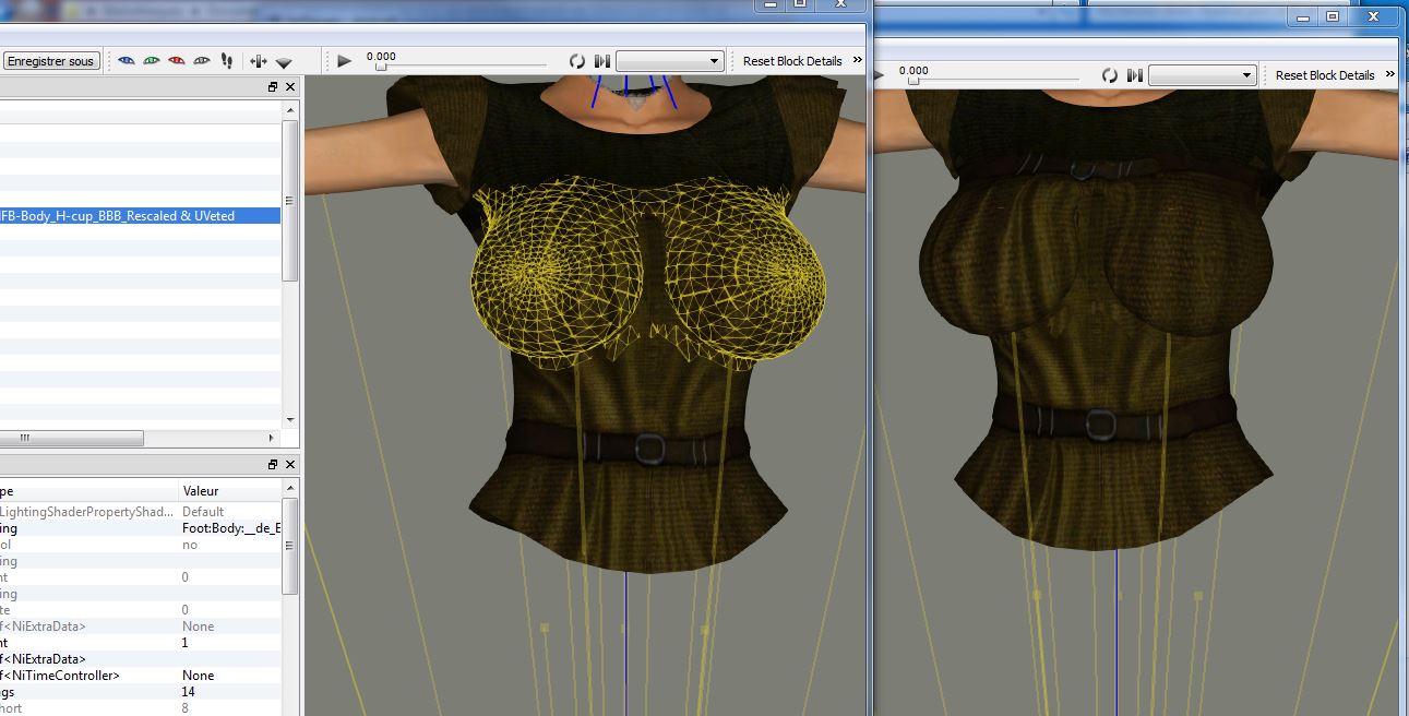 PS : if for some unknow reasons you desire the converted nifs ( with the hole & bugs ) of the first screenshot, just ask ... by the way it's possible to repair them just with NifSkope but to need to find the right vertex value first ( us the symetrical one to find it ...) that's not so easy in this case because there is no one UHK upper body you can use as a " modder resource " .