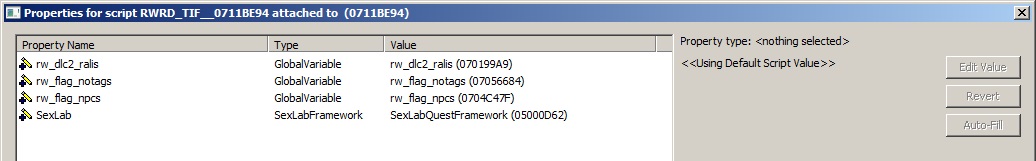 If I knew how to do -that- much, and the sexlab integration, I could probably get pretty far. Its sad, because I know -3- computer languages, but the Creation Kit script stumps me.