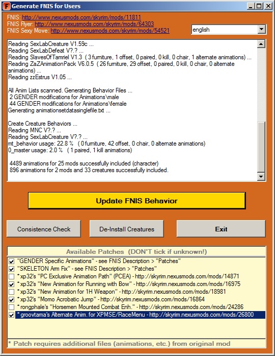 Here's my FNIS report: