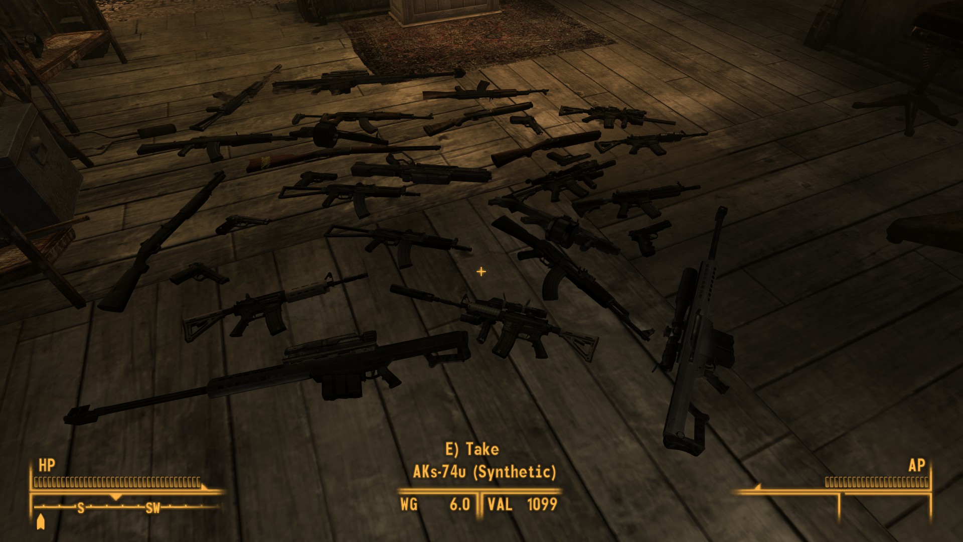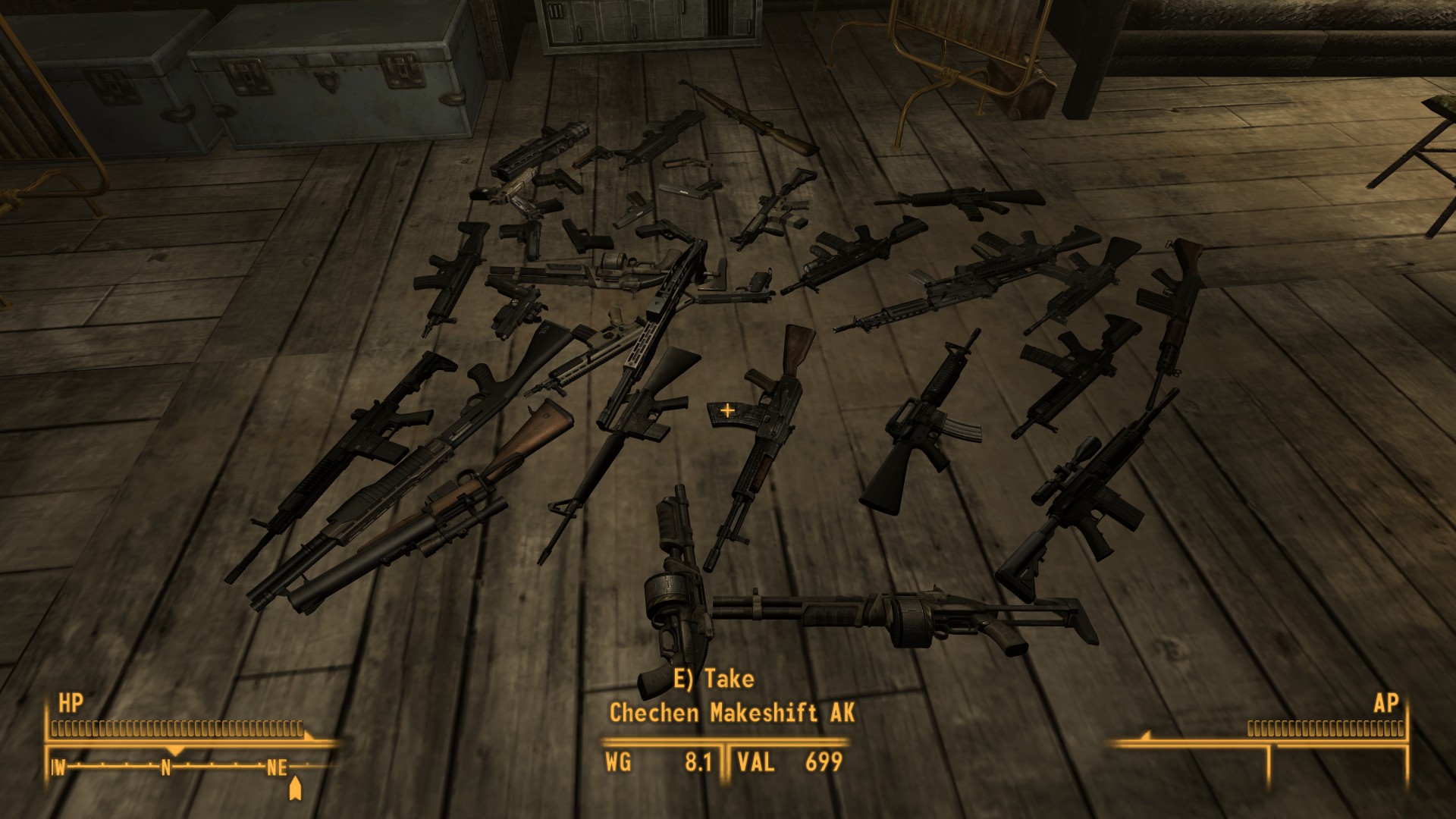 And for those who either can't find the all the weapons or the shop, I offer a set of esp.'s that will add 5 crates of weapons and weapon mods to Doc Mitchell's House so you can easily find all of the weapons (the esp attachment below).