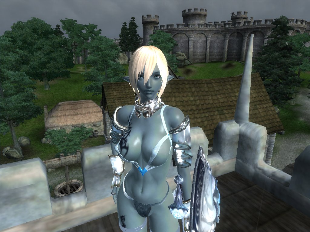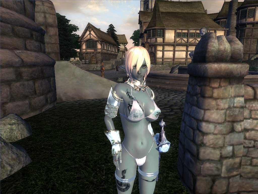 Actually I find this looks very good. A very cute Evy character. The neck seam isn't that evident as with the race's original textures. Now with a seam-concealing necklace the girl will look perfect. I had experimented with Ozmo's textures but found the head's UV map to be a nightmare: The neck parts are not where they are supposed to be (unlike 'normal' head meshes). Makes it difficult to adapt the neck colour to the body.