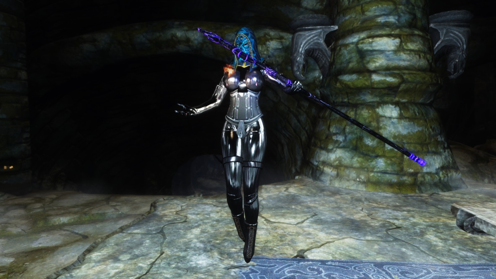 Now those spoiled little brats back at the college were going to pay. I reached down into the pile of robes and ashes to pick up the priest’s staff and his mask which radiated power like nothing I’d ever seen before. The vibrations came back, as I knew they would, but by focusing on my wrath, and coming satisfaction, I was able to push the growing need within me to the back of my mind. There’d be time enough for that later when I’m relaxing on my new kahjiit-fur blanket and I’ve got Brelyna’s cute little head between my legs. I donned my new mask and casually strode towards the exit. This was going to be fun.