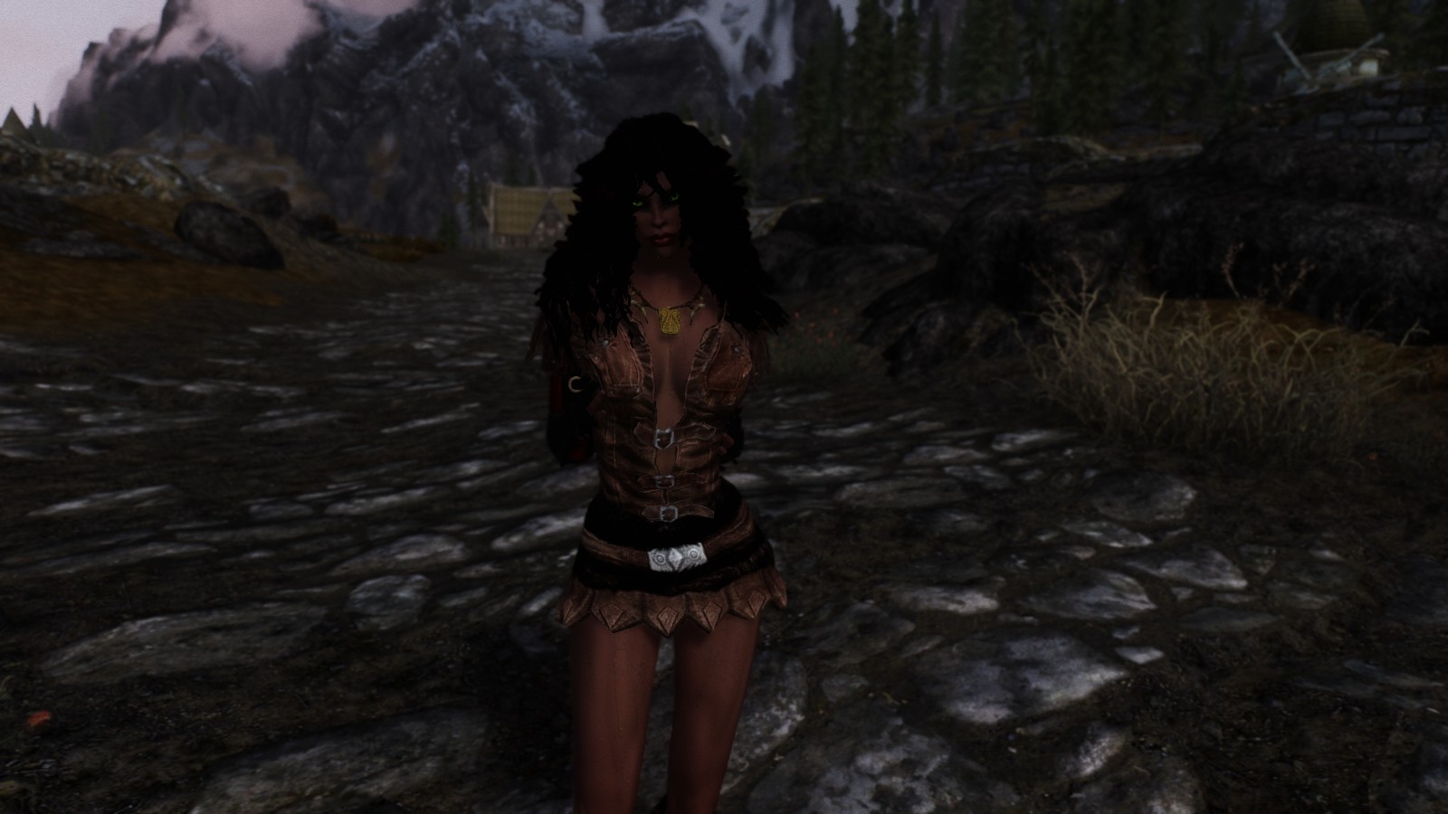 I think you have a lighter skin tone though. I was aiming for a very tanned look as the story behind Shalia is that she had only just arrived in Skyrim after having most recently spent some time in Elsweyr tracking down the location of a band of murderers and thieves who had ransacked the Cyrodiil orphanage she grew up in, killing all the witnesses. It turns out that they were part of a larger ring of criminals and they had gotten sloppy and too bold as when Shalia arrived at their Elsweyr hideout, they were all executed. So now, Shalia is in Skyrim trying to following what's left of the trail to try and end that crime ring.
