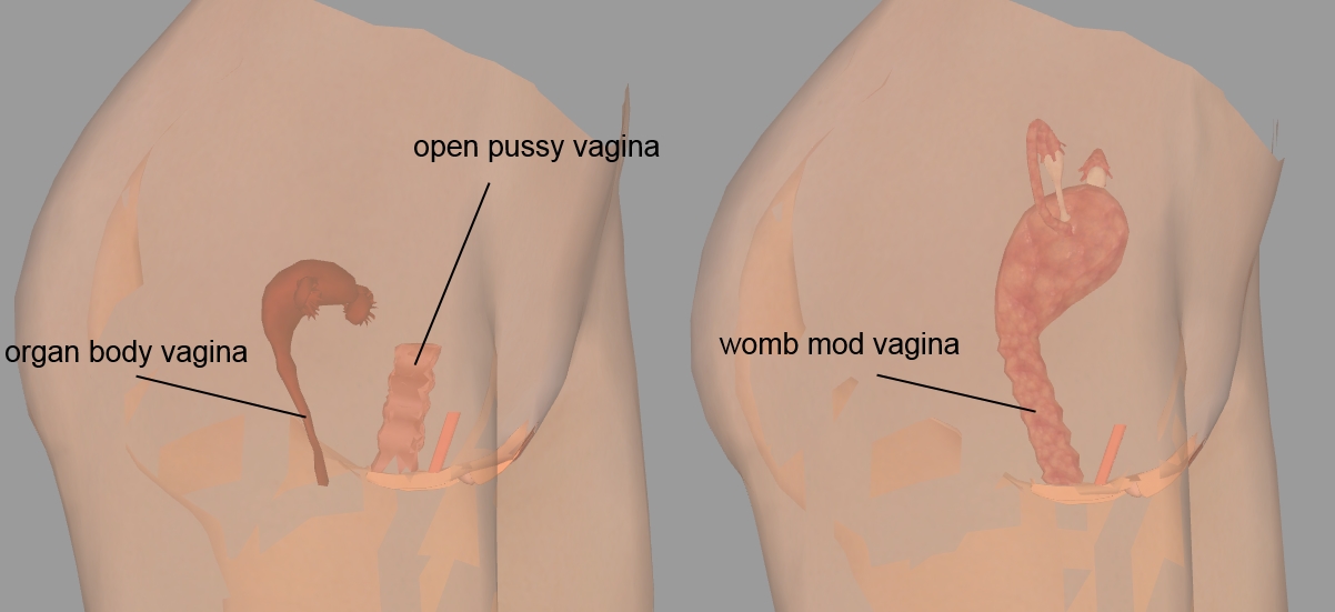 The inner organs in the organ-body are in right place, but the womb-mod-vagina looks better and fits better to the open-pussy-body. A open pussy body with inner organs would be nice (normal and pregnant)