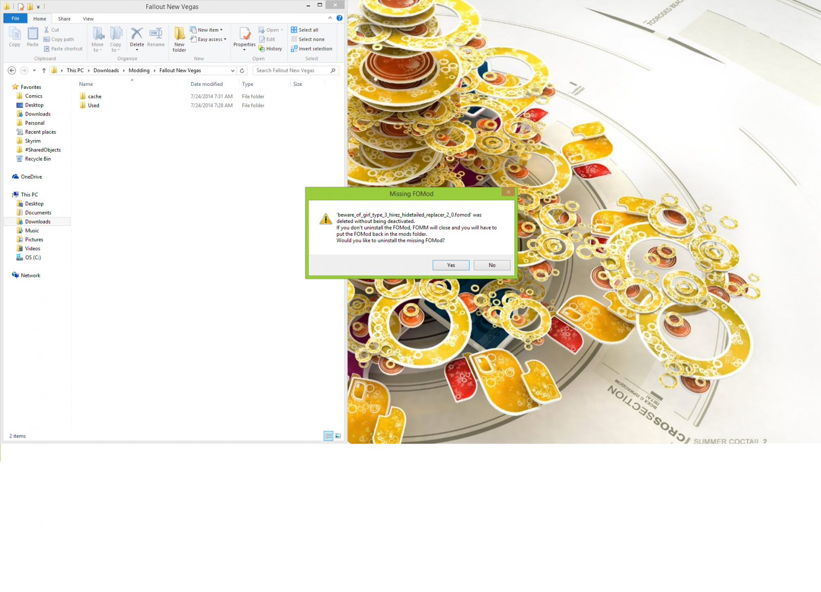 NOTE: Using the installer does NOT put your installed mods at risk. Uninstalling it or reinstalling it will not touch the FOMM mod library directories or install log.