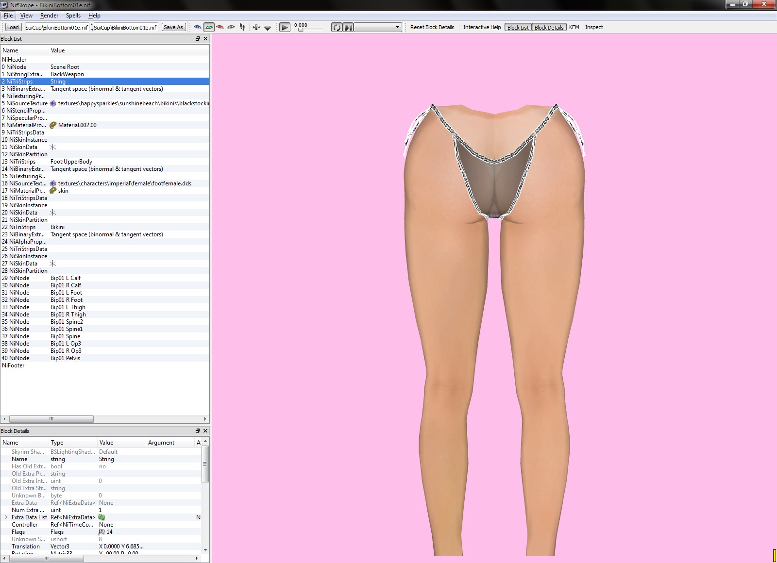 OK The issue that arises is that I want to do this from nifskope (keep in mind I also want the learning experience), I want to add the ability for me the change the texture to the Bikini main part without affecting the string.