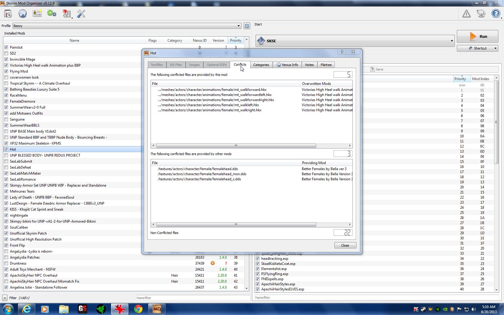 My body uses walking/running animations, but Victoria's High Heel Walk animations are being overwritten by my body's animations. My body's femalehead.DDS files are overwriting my body's femalehead data. Bella's make-up is awesome, so that's what is overwriting my original femalehead.DDS data [3].