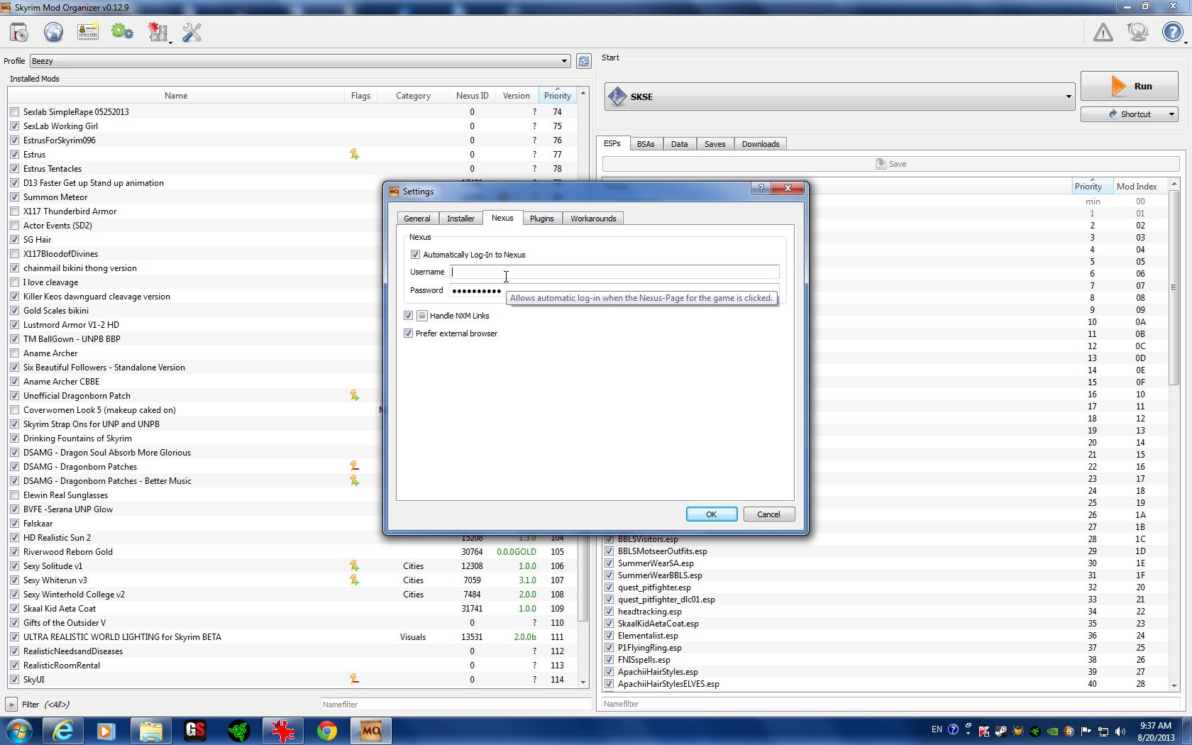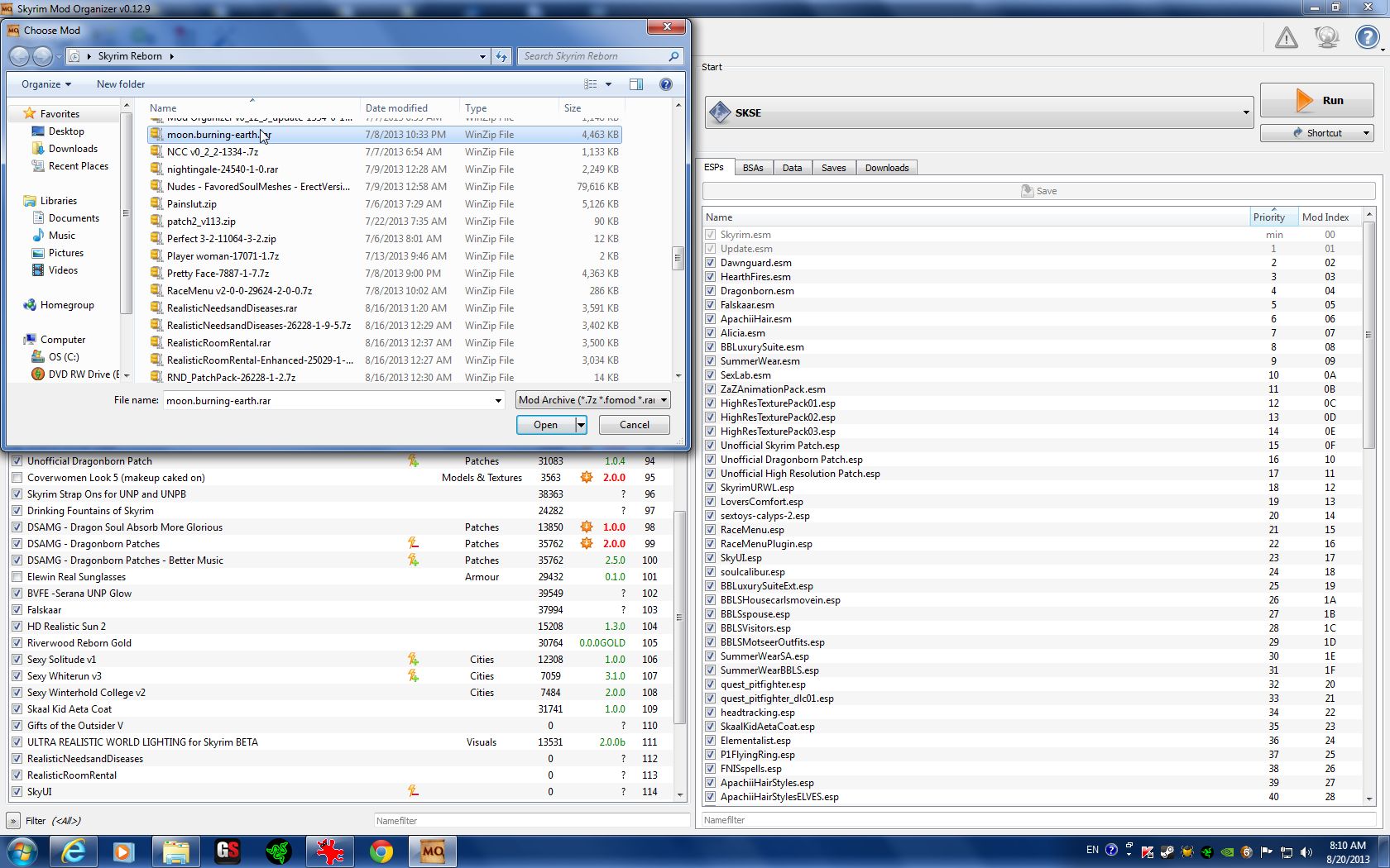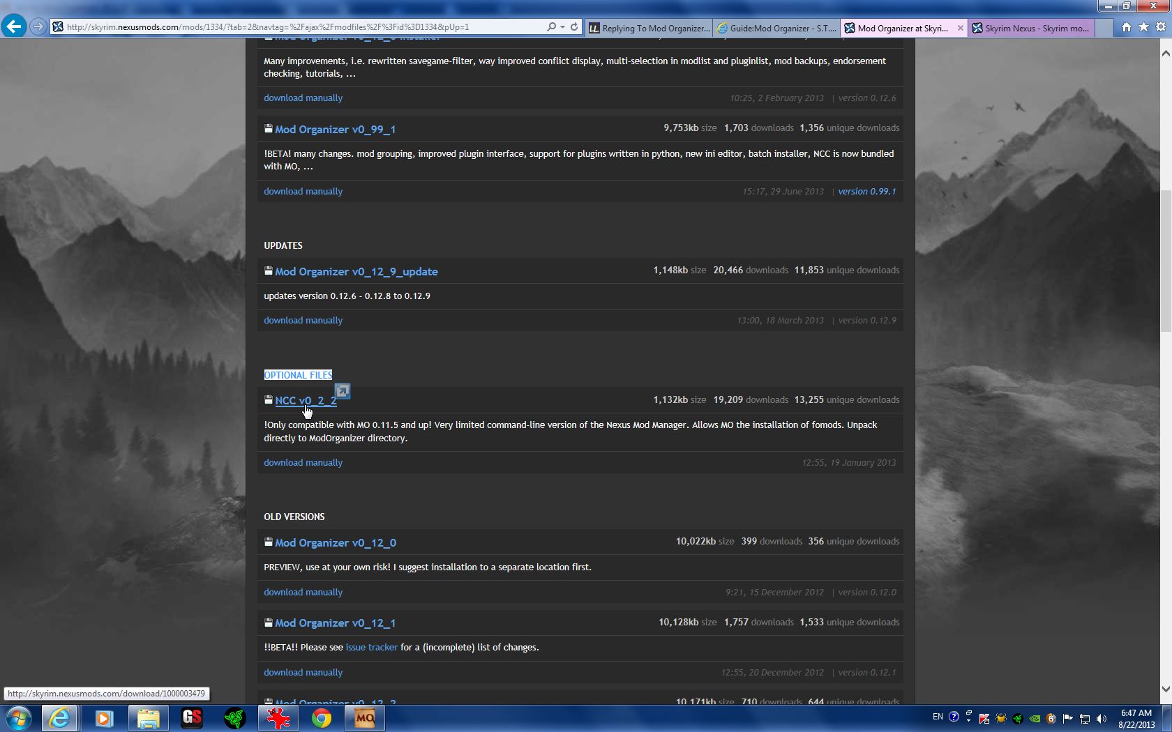 Clicking that will take you to the Download Page of the mod you're dealing with, complete with the newest updates and most recent available download link. Just remember that all the same rules apply when downloading a mod strait into MO: You must choose a server from an area of the world (London, Seattle, Salt Lake 2, etc), and simply begin the download. When your DL is complete click the 'Downloads' tab post-111270-0-39501300-1376986589_thumb. double-click the mod from the column on the right, and be sure to say "NO" if it asks if you'd like to unpack the .bsa (if it has 1 or 2).