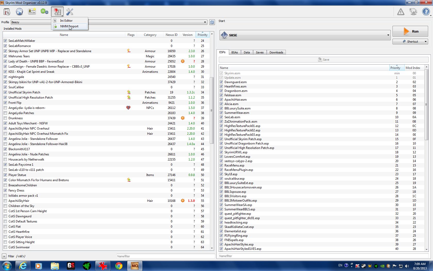 As I've previously mentioned, you can import NMM mods. post-111270-0-07027200-1377168098_thumb. In that same window, you can also edit your skyrim.ini and your skyrimprefs.ini. post-111270-0-84623100-1377168113_thumb.