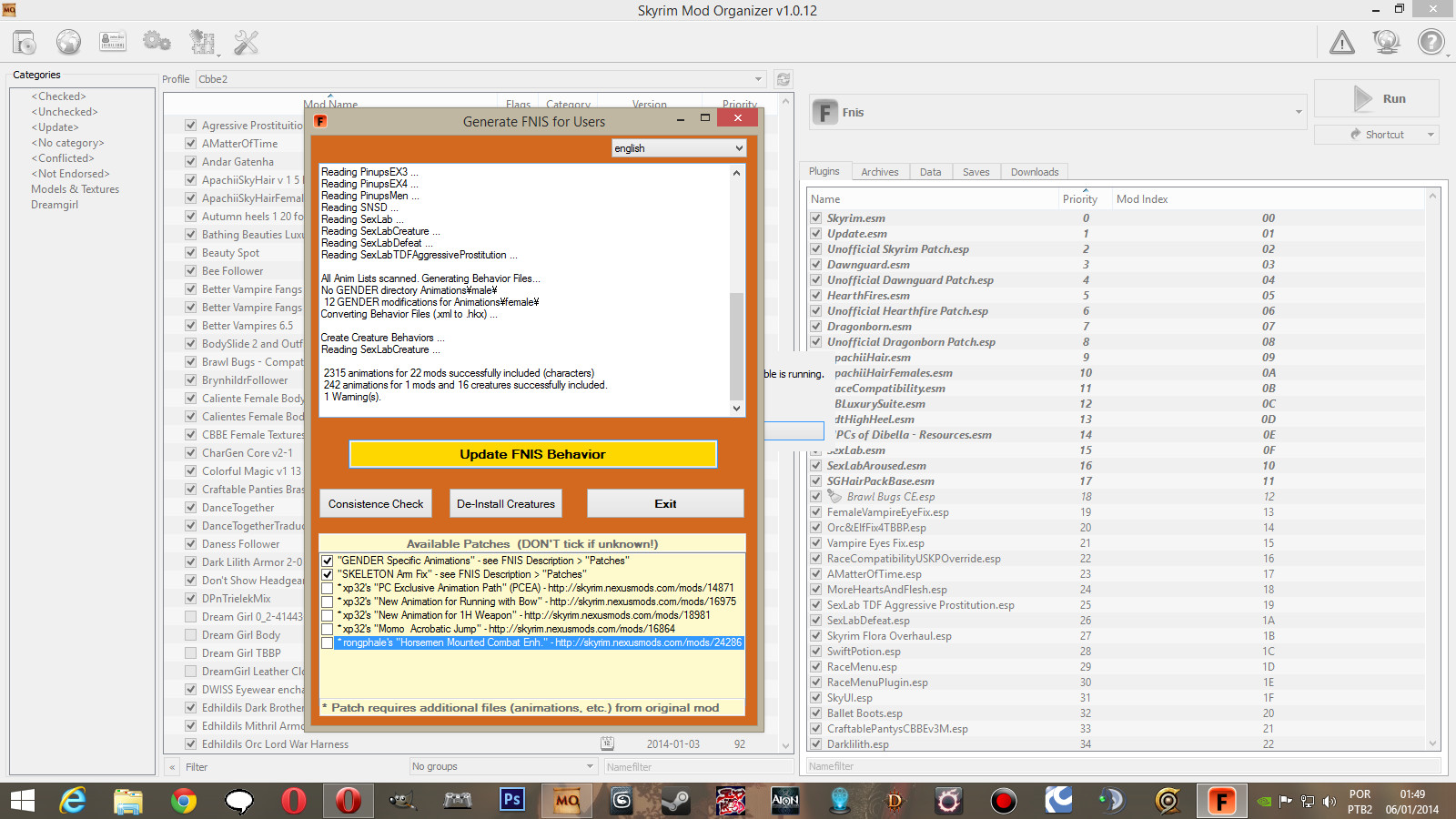 About fnis i made that : copied that to my skyrim folder, and just used / actived inside MO binary, till now got all working, sexlab , dances, creatures, poses,etc.