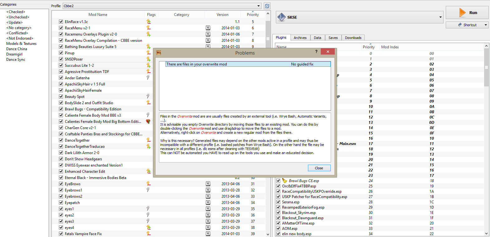 Thanks, im doing that that is the word i was tryng find categories (my english sucks bad) , yea im doing that using profiles, but dnt exist a way to when i switch for dreamgirl dnt dnt show any saved things at cbbe profile and just show from default one (vanilla,fnis,skse,patches its was like i saved my vanilla profile) .