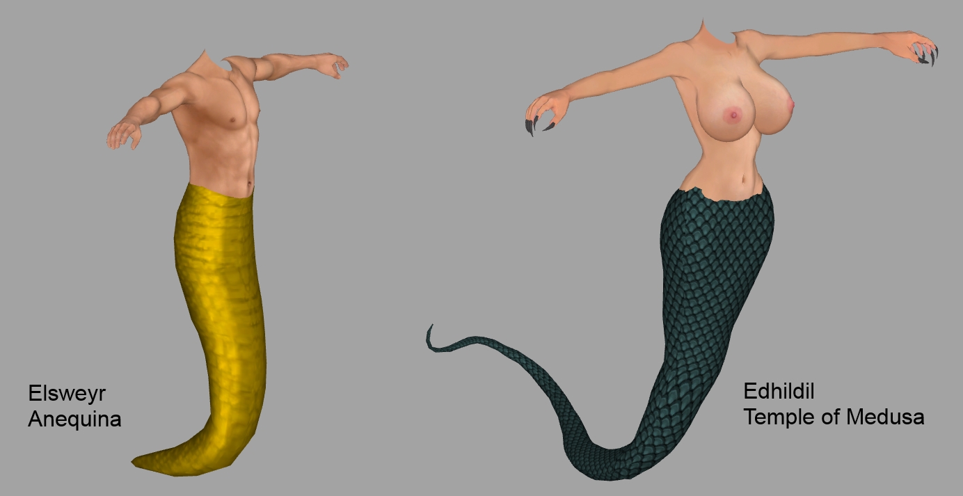 In Edhildil "The Temple of Medusa" Mod is a snake tail for female DM Body. Emily used the Gorgon in her MG Mod.