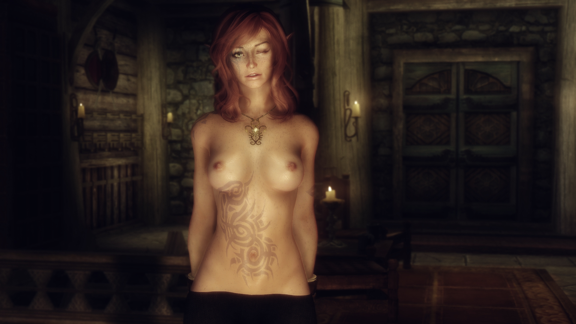 I would like to know as much as possible about what's going on in this screenshot; race, skin texture, body, and especially jewelry. Any information would be greatly appreiciated.