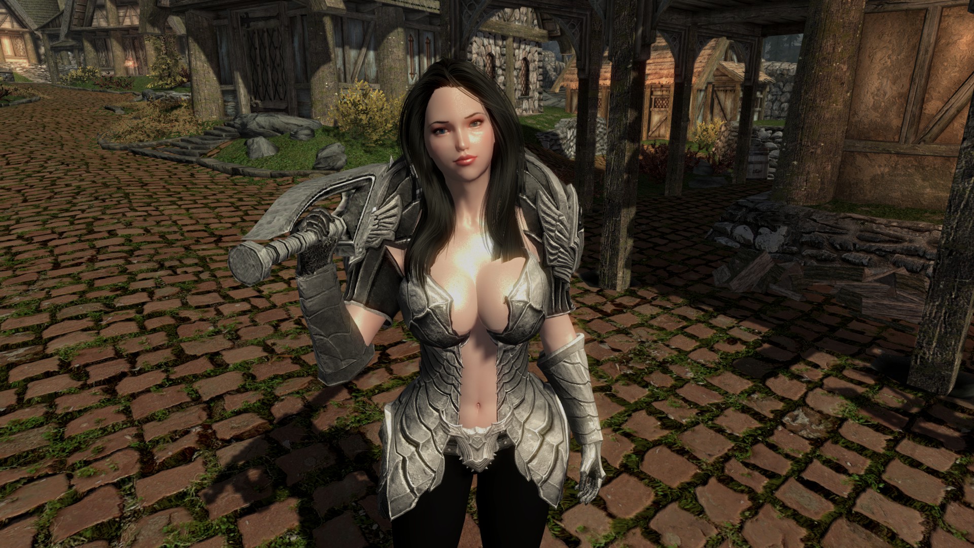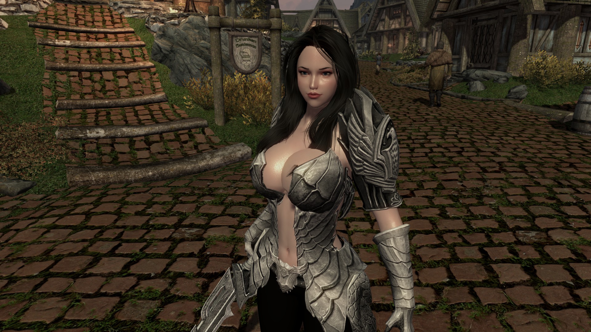 And I added my own little twist. This is another of my "special" BodySlides. That means that the metal bits on the armor will not bounce, but the exposed breasts will. It's a little thing I do on a few armors that have obvious metal, but also lots of exposed breast. There shouldn't be any clipping depending on your havok settings. This applies only to the heavy set. The light version is normal bounce.