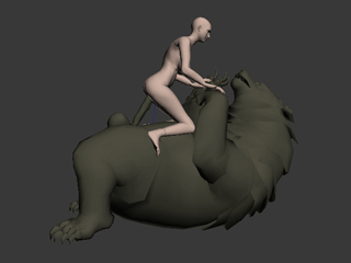 That was the plan. I already have some testing samples ( while I was experimenting with getting the !@#%$!%^ export to work ) with the werewolf on her back ;)