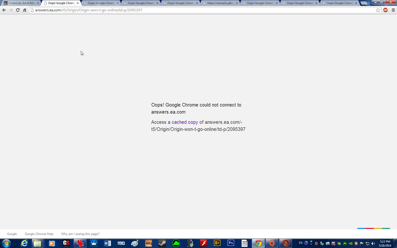 It took all night to properly install all my mods to ME 3, and then it broke, so I tried to click download on the ME 3 icon on the Origin menu, but it said "cannot download a game in offline mode", or something, so I went to the web try to Google answers, but every EA-related page, even things like AskYahoo, and various different sites, simply will not load. All I get is Oops! Google fucked up! :angry: