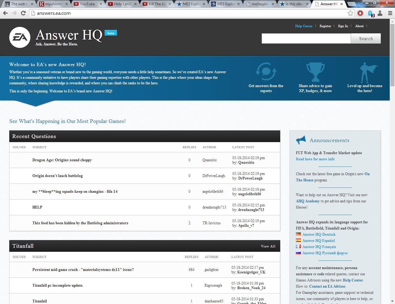 Damn, it took 23 pages of people asking for help on Bioware's forums to get NO response from officials. People finally found some answers after a long while. I'll give those a shot too. I'm so close to clicking [post-111270-0-56051700-1400456637.pngMark Solved]...so close...