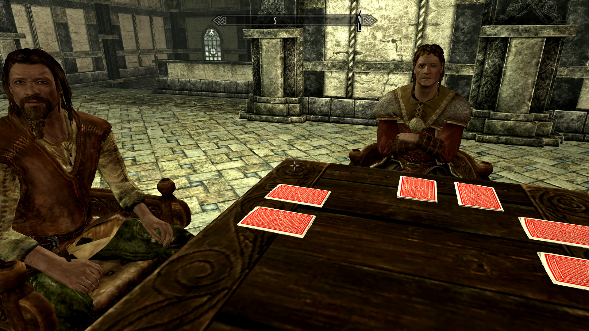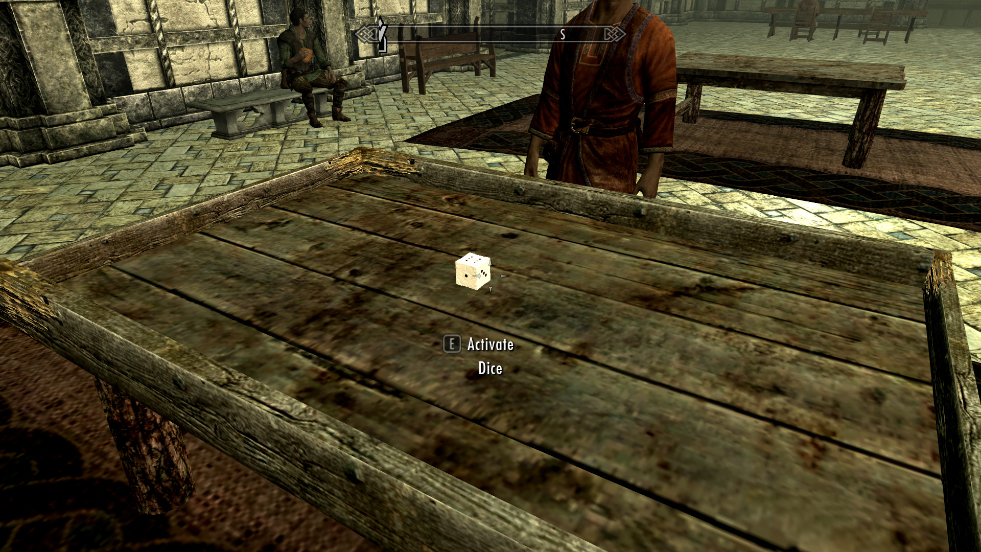 When I did make it to the casino though, I was impressed. You did a really good job on that one, the dialogue was very well written. Could be improved though. Right now it seems very big and empty... I don't think that's what you were going for. I think it'd be better to fix the "big" part than the "empty", though; the entrance doorways are literally holes in the ground, but the place they lead to looks more "rich and fancy" than "sketchy underground den". The rules book should probably reach the floor with you, and maybe say "roll" where it says "role" right now. I did also find clicking through the dice and blackjack dealers' dialogue slow... the dice, it would be nice if you added "High" and "Low" as opening dialogue after your first game, so you can click "high" right when you start talking to him, would be a big help. Help speed things a bit. I did find the gaming to be a bit slow... after several rounds of everything, I still had more or less as many tokens as I came in with, and was getting impatient. Not being allowed to leave [why?] especially made this bad. My character was in serious danger of starving to death since you didn't have any food implemented [and any I carried was taken from me!], and I had to turn off Frostfall to keep the stolen booze from freezing me. Allowing the player to leave or giving them food, drink and heat sources would make things better on those who use survival mods. Eventually I just dropped all my tokens just so something new would happen.