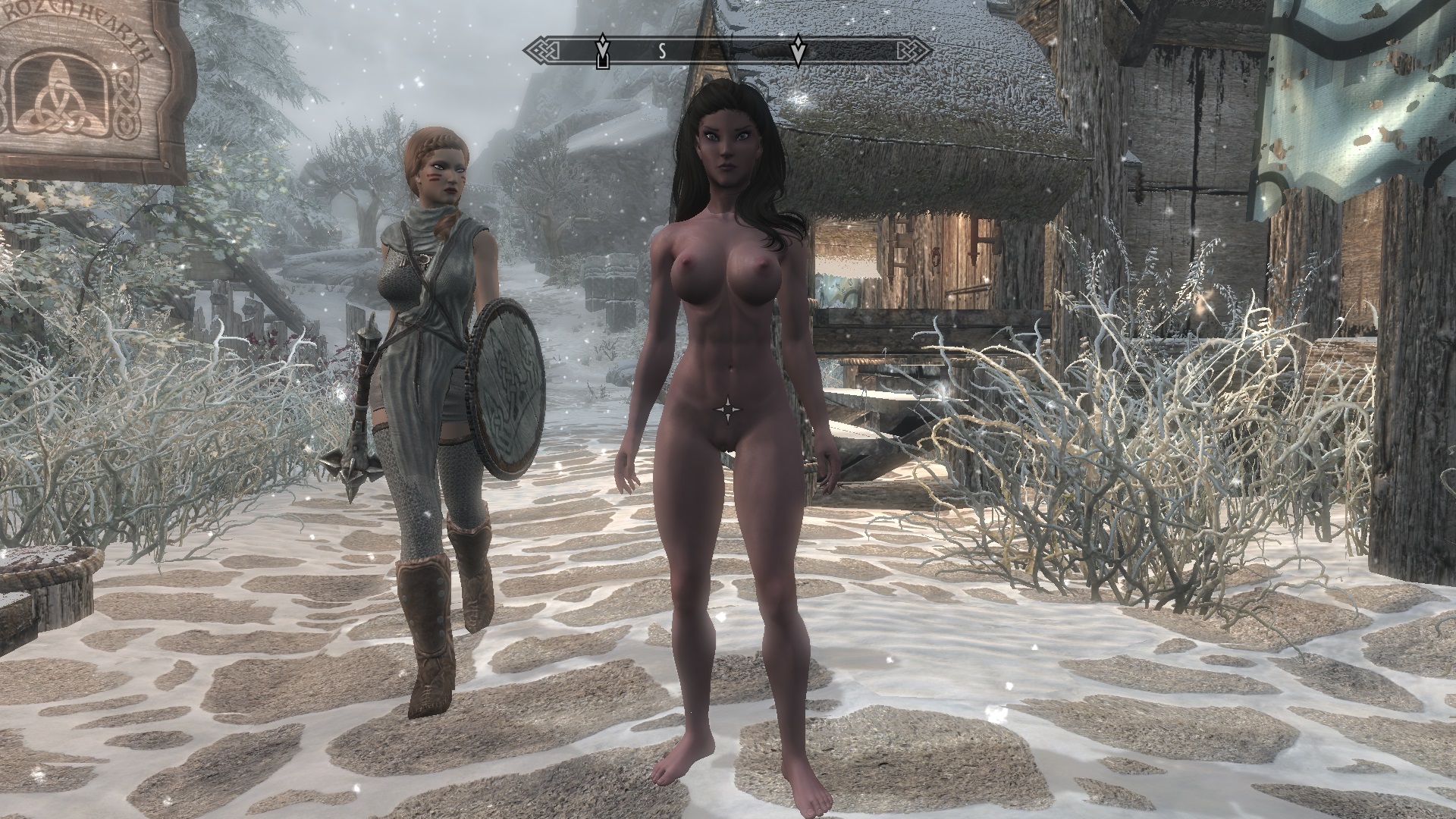 Obviously, you will be naked most of the time. If this bothers you, then this race is not for you. The female body is the SeveNBase Bombshell body (BBP support) with the Fair Skin Complexion skin. The male body uses whatever body type and skin you have installed yourself. This means you need to have a modern skeleton installed that supports BBP. From the SeveNBase page: