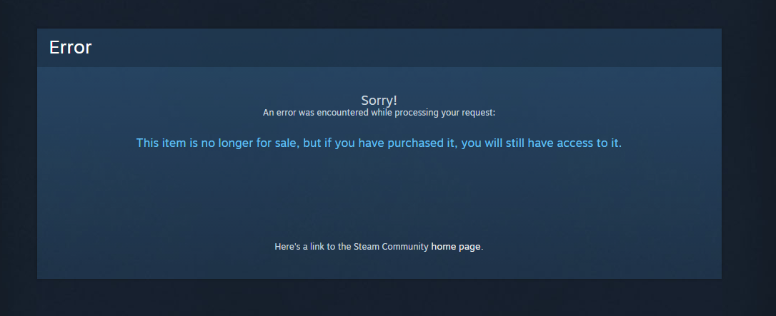 Could be a glitch or a re-tooling but all of the paid mods now link to a "No longer for sale" page on Steam, even the ones under review.