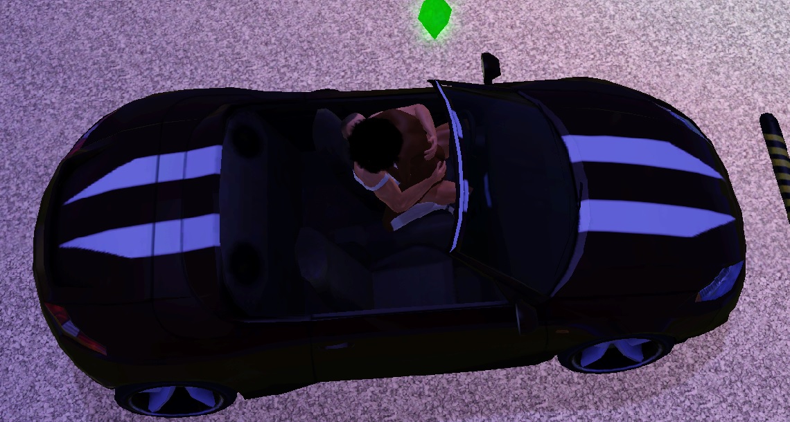 I not too sure if the animation will work with the sportcar it seem that Lady666 used the the stander sim car so the animation may need a to be modify for the sportcar by lowering it just a though.
