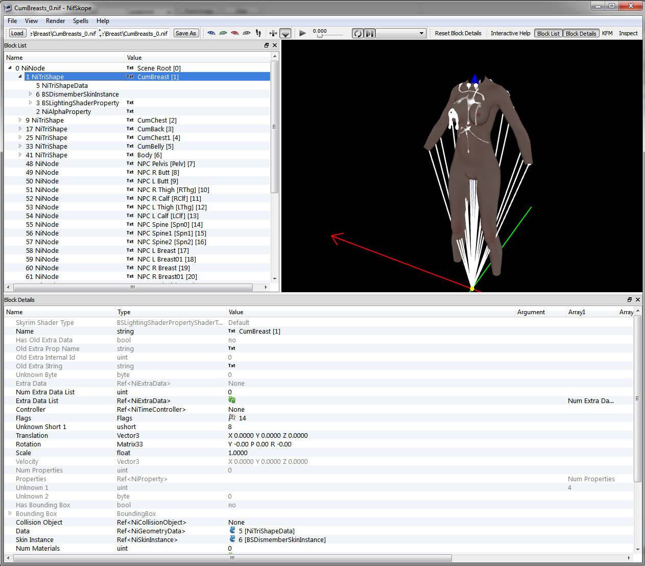 So, I created the armor in 3Ds, skin wraped it, added the Bsdismember thingy and exported it to nif.