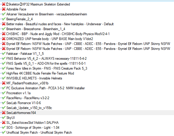 Had installed many mods but when i use the XP32 Skeleton the game crashes D: